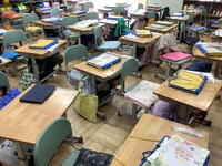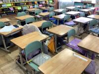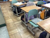 1年間使った教室をきれいにしました。机のネームプレートをはずしたり、机やイスの下のほこりを取ったりして、隅々まで丁寧に掃除をしました。きれいに掃除して、次の学年へ気持ちよく使ってもらおうと感謝を込めて行いました。