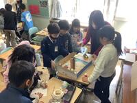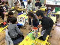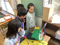 3年生の理科の授業の様子です。磁石やゴム、豆電球、風など理科の学習で学んだことを活かしたおもちゃづくりをしていました。お互いに作ったおもちゃで遊んで楽しみました。