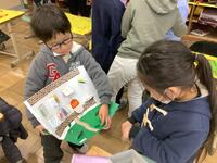2年生の図工では、完成した作品をお互いに紹介しまていました。友達にうれしそうに説明したり、作品のすてきだなと思うところを伝えたりして、お互いを認め合う温かい雰囲気が見られました。
