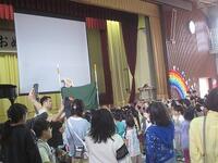 校歌や学校行事の紹介、学校クイズ、じゃんけんゲーム、朝顔の種のプレゼントと、盛りだくさんの内容です。