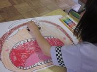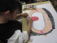 タブレット端末を活用して自分の顔の写真を撮り、じっくりと見ながら描いていきます。