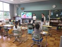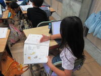 ALTと一緒に外国語に触れたり、国語の教科書を音読したりする子どもたちです。
