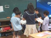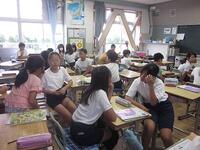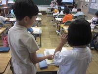 家庭科の授業では、夏休みに家庭科に関すること(料理や裁縫等)をしたかな?という問いかけに、友達と交流をはじめる子どもたちです。