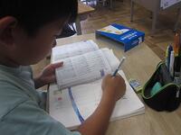 辞書を使い読み方や意味を調べたり、描きたい絵を描くためにアイディアをまとめたり、算数の学習を進めたりと、1時間ずつを大切に過ごしています。