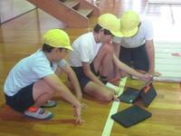 体育ではタブレット端末を使って、マット運動の動きを録画しました。その画像を見ながら、次の課題を決めていました。