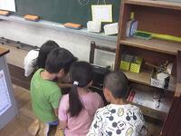 学校に戻ってくると、みつけてきた虫たちについて、お話しを伺いました。バッタとキリギリスの見分け方や育て方など、子どもたちが知りたくなる情報ばかりでした。