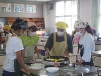 ランチョンマットづくりに取り組んでいる5年生。ミシンを使って塗ったり、布にアイロンをかけたりしながら、ていねいに作業を進めています。