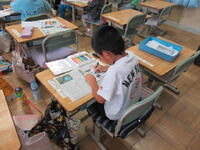 川とその被害について学んでいた5年生。日常生活の体験をもとに、みんなの前で発表する子供の姿がありました。