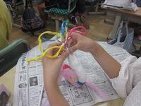 紙紐や半紙を使ってアンモナイトの形を作る子供たちです。色づけも、とてもカラフルでかわいらしい仕上がりです。