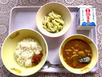 *牛乳 *秋野菜カレー *福神漬け *マカロニサラダ