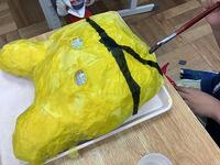 4ー8組の教室では、図画工作でお面づくりに取り組んでいました。