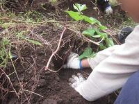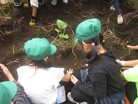 1年生が、学級前花壇で育てていたさつまいも。今日は、その芋掘りを体験しました。