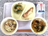 *牛乳 *吹き寄せごはん *魚の西京焼き *ごま和え *すまし汁