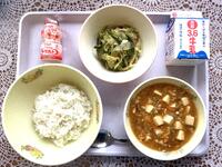 *牛乳 *麦入りごはん *麻婆豆腐 *ヘルシーサラダ *乳酸菌飲料