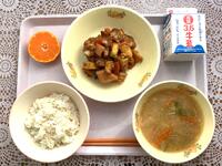*牛乳 *麦入りごはん *魚と大豆の揚げ煮 *どさんこ汁 *菊花みかん