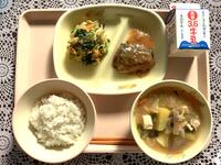 *牛乳 *麦入りごはん(有機米) *さばのみそ煮 *ごま和え *さつま汁