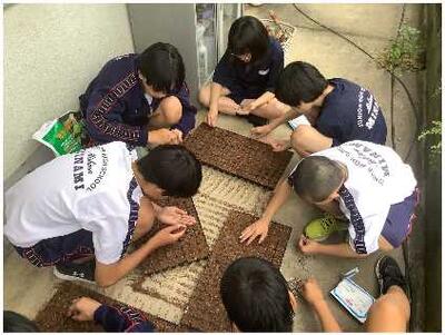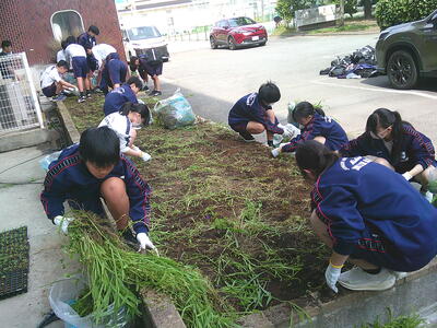 パソコン部からの応援を受けて、環境委員が花壇の整備を進めています。