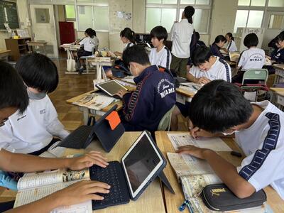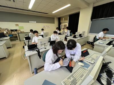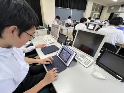 中体連、コンクールに向け部活動に力が入っています。もちろんパソコン部もこつこつがんばっています。