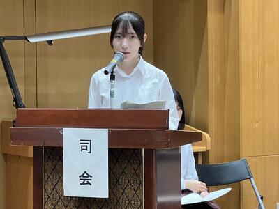 本校の代表生徒は、“What Do We Have to Do to Open Doors” というタイトルで、「自分の力で未来の扉を開くために、学生のうちからお金について学ぶことが大切である。」と語りました。聴き手にしっかりと伝わる落ち着いた話しぶりで、堂々とした姿がとても印象的でした。