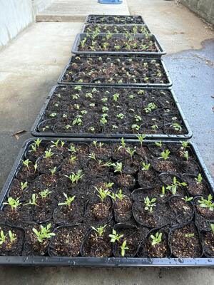 13日には花壇の草を抜いて土をならし、17日には苗箱からポットに植え替える仮植を行いました。