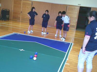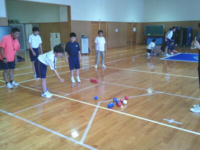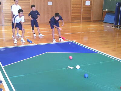 「えがお」や「みしまキャラバン隊」ではどのようなことをおこなっているのかを学んだ後、ボッチャの体験をしました。