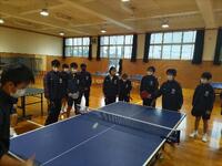 12月19日(月)、1年生の授業を参観、技術科は木工、保体は卓球、英語はオンラインも含めて英会話です。