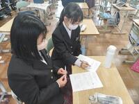 12月14日(水)、2年生の国語授業、この日のディベートの題目は「自転車通学」です。国語力を発揮して文章を作り、友だちに伝える力を付けます。