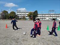 2月17日(金)、2年生の授業、保体はサッカー、数学は単元のまとめ、家庭科は裁縫です。