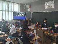 2月17日(金)、3年生が公立高校の面接練習です。三年間の動画制作をクラウドからダウンロードしている生徒もいます。