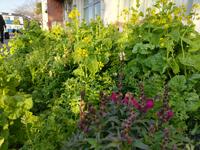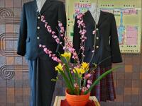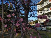 2月20日(月)、昨日の南風で春が訪れました。花壇は競演、しだれ梅も満開、生け花は色が冴えます。