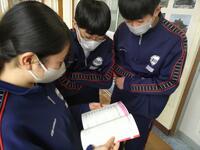 2月9日(木)、1年生はテスト最終日、休み時間は次のテストに向けて友達と総確認です。