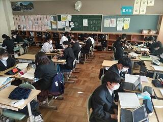 1月30日(月)、特別支援学級の授業、国語は3年生は入試対策、他の学年は習熟度別です。