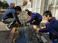 1月19日(木)、特別支援学級の授業を参観、家庭科はミシン、技術科はネギの栽培、数学は自習です。