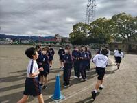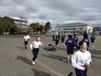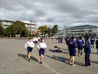 1月17日(火)、1年生の保体授業を参観、持久走です。タイムトライアルでフルパワーです。