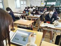 1月16日(月)、特別支援学級の授業を参観、保体は皆でラジオ体操、別のクラスは国語の漢字です。
