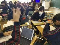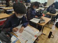 12月9日(金)、1年生の社会科授業、アフリカ大陸の諸国を調べ学習です。個人、グループで調べ、教師に報告します。