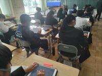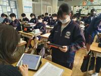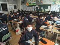 12月12日(月)、1年生の道徳授業、1組は学級閉鎖のため元気な生徒はオンラインで行いました。