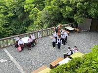 5月24日(火)、特別支援学級の宿泊行事です。久能山東照宮に到着です。海が見えて初夏を感じます。