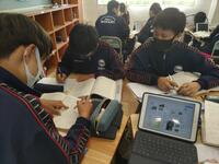 2月7日(火)、2年生の授業、国語は走れメロスの終末、数学はテストに向けて教え合い、社会科は西南戦争です。