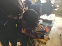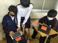 2月14日(火)、1年生の数学授業、題材は球体の体積と表面積、友達と協働で考えます。