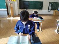 1月19日(木)、特別支援学級の授業を参観、家庭科はミシン、技術科はネギの栽培、数学は自習です。