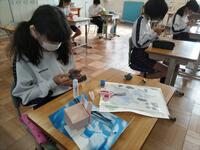 2月7日(火)、特別支援学級の授業、技術科はペーパークラフト、英語はALTと会話、家庭科は衣服を学びました。