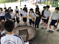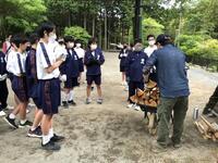 5月24日(火)、1年生の宿泊行事です。実行委員会の生徒がキャンプファイヤーを組みます。夕方に向けてわくわくします。