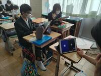 12月19日(月)、1年生の授業を参観、技術科は木工、保体は卓球、英語はオンラインも含めて英会話です。