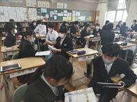 12月22日(木)、2年生の授業を参観、英語はペアで英会話、国語はディベート、社会科はアヘン戦争です。