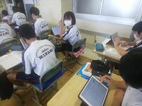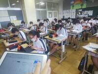 7月15日(金)、1年生の国語授業です。生徒が接続詞の問題を解き、教師が一人一人に支援をします。