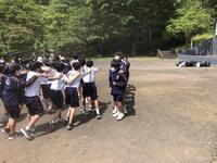 5月25日(水)、1年生の宿泊行事です。野外レクレーションの時間です。快晴です。ジャンケン列車で交友を広げます。
