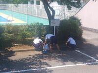 7月1日(金)、3年生は毎週金曜日、昼休みにボランティア活動をしています。今日は酷暑の中、築山の整備と花壇の土作りをしてくれました。