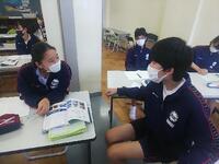 7月20日(水)、1年生の授業を参観です。音楽はパートで話し合い、国語は作文の題材決め、英語はスピーキングの発表です。