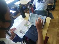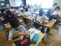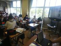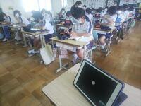 7月8日(金)、1年生の授業を参観です。国語は画面共有で主人公の気持ちを考え、理科は物質名の同定、社会科は古墳時代を学びました。